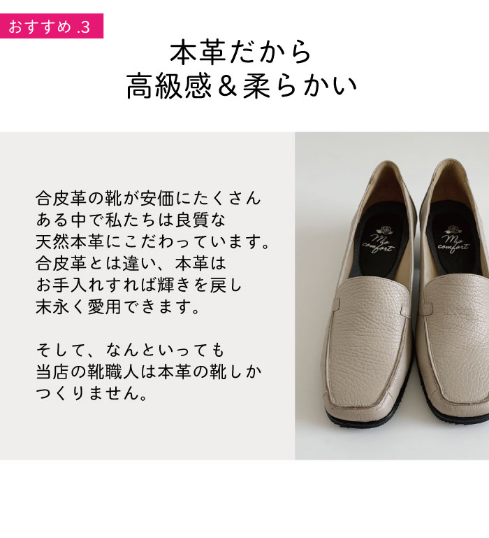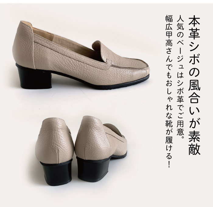 長らく"靴難民"で、快適でいて、おしゃれも諦めない、そんな靴がどこかに存在しないものかと思いながらも諦めていた矢先出会ったのがこちらのメーカーの一番人気、5Eの幅広甲高パンプスでした。 その履き心地の良さといったら救世主にあったかのようで、そのあまりの感激に、他のデザインの靴も欲しいと思い、この3Eのシンプルローファーを購入しました。 デザインも皮の質感も良く気に入ったものの、こちらの靴の型は残念ながら私には合っていなかったようで、横幅が少し緩くまたかかとのカーブも浅めのためか歩くとパカパカします。 5Eのパンプスに比べると、この、かかとの抱き込みが 浅いので、通常サイズであっても大きめに感じます。 このままでは履けないので、靴下を履くなどして工夫することにします。