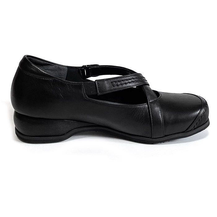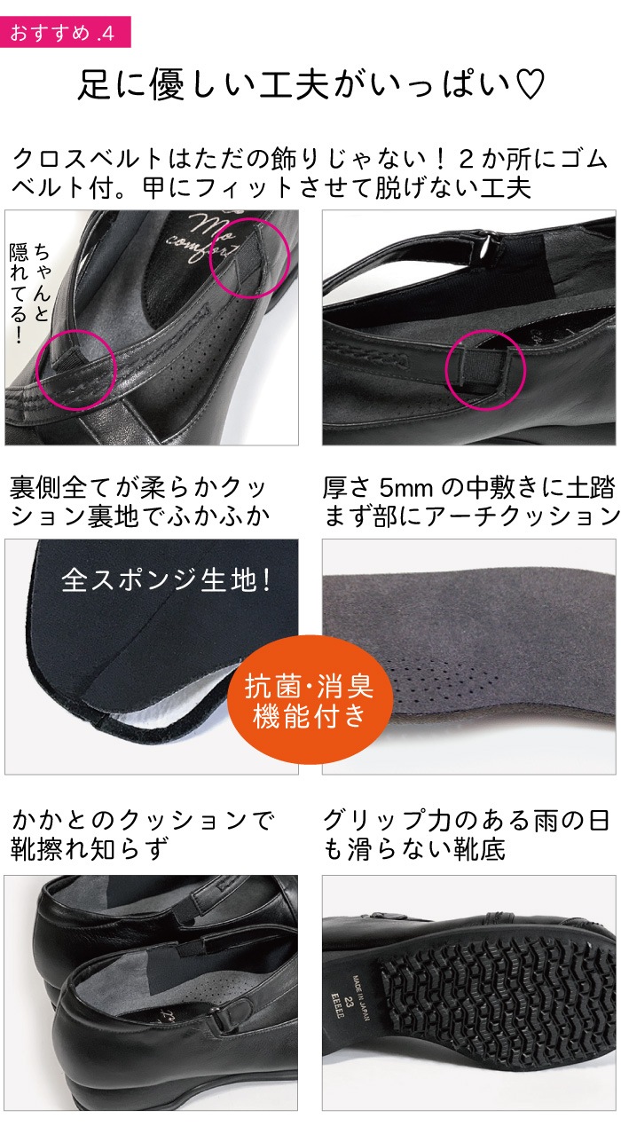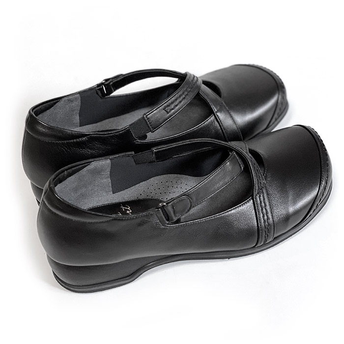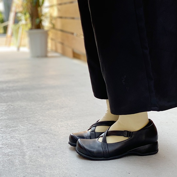 | 爪先にややゆとりあり。クロスベルトがしっかりしていてとても安定感があります。ステッチもかわいいし、手が込んでいて日本製の手作り感が伝わるお靴です。 |