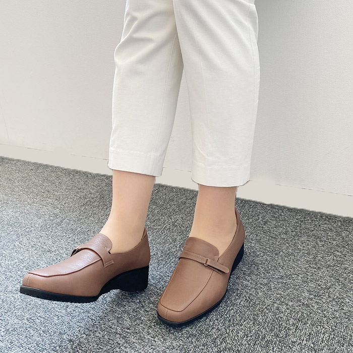 以前購入した5E甲高ローファーがとても気に入ったので少しデザインの違うこちらを購入しました。少しヒールがあってキレイめに履けるのに楽ちんで最高に気に入ってます!
