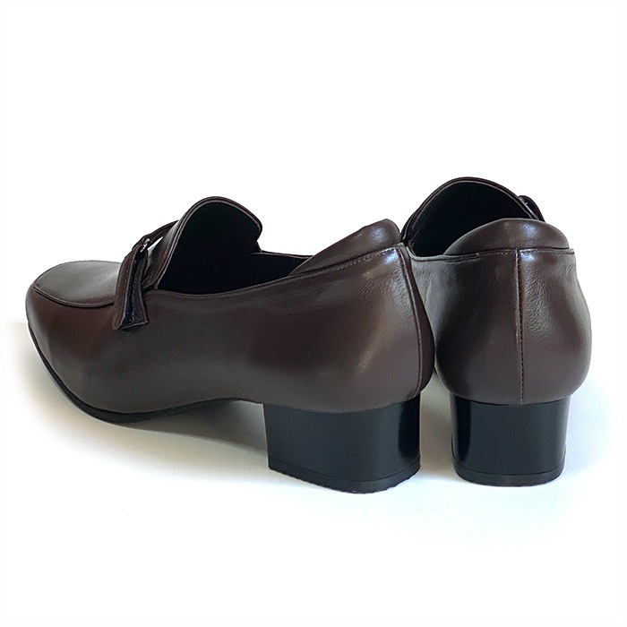 フラットヒールだけどヒール高さは3.5~4.5cm。足がきれいに見えます。片足軽量200g。ヒールが軽量素材なので本革製でも重たくありません。