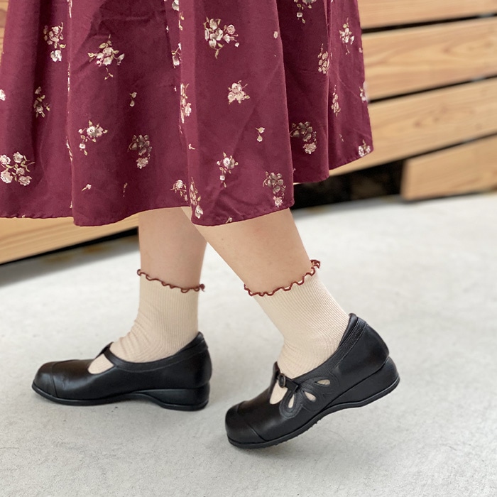 初めて貴店の商品を購入させていただきました。 履き心地に満足です。今日到着したばかりですが、嬉しかったので早速コメントさせていただきます。 写真では花柄の部分が濃いピンクに見えていて、イメージとしては黒に近い深いブラウンとピンクのコーディネートでしたが、実際はゴールドに近い花柄でした。 これはこれでお洒落ですので、薄い黒のストッキング着用にてこれから履かせていただきます。 私の年齢からすると背伸びした年配に見えそうかも知れませんが、暫く履いてみて更に良ければ、他の商品も検討したいです。 良い商品のお取り扱いに感謝します。