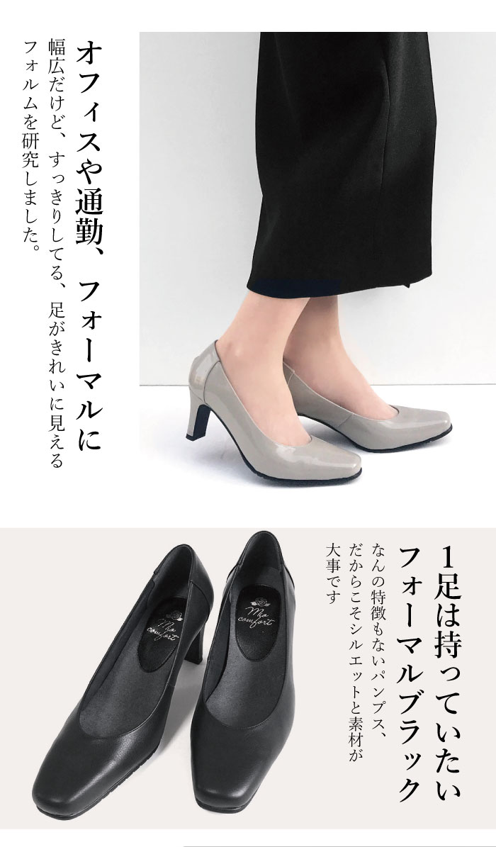 通勤やオフィス、冠婚葬祭にも使いまわしできる上品パンプス。一足あると重宝します。