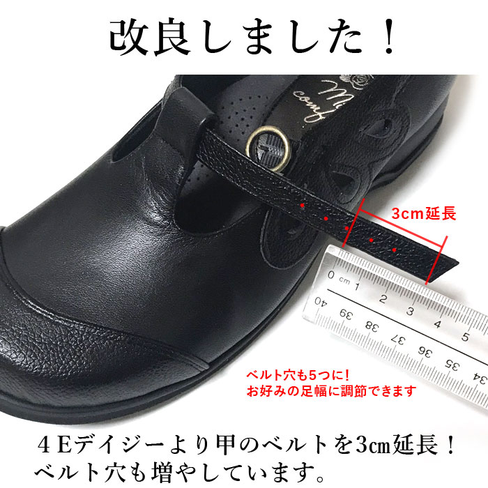幅広のフォーマルにも履ける靴を探していました。デイジーはデザインがすごくかわいくて一目で気に入りました。甲の深さがきになりましたがちょうど良くとても歩きやすいです。私は夕方に足が浮腫んでくるのですがこの靴だと全然痛くなりません。もっと早く出会いたかったです。他の靴も購入検討します!