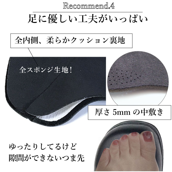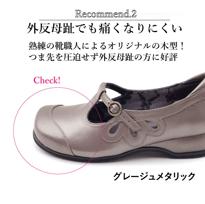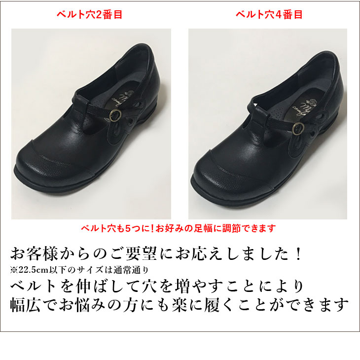 ネイビーに続いて仕事用に黒を購入しました。親指の付け根が外反母趾のため出っぱっているのですが、とても柔らかい革で、初日から足に馴染んでくれました。痛くなくて本当に嬉しいです。足先は硬いけど足の形に無理なく沿ってまったくストレスなし。ベルトに短いゴムの部分があって脱ぎはきしやすい。なんといってもデザインがかわいい。手作り感あって大好きです。小さいサイズ作って下さってありがとうございます。ストッキングの季節用に21.5サイズ購入する予定です。