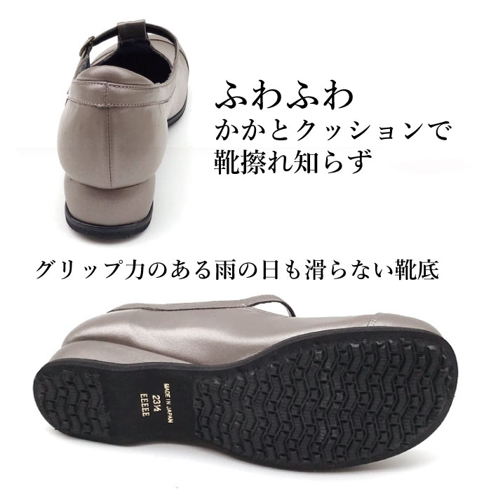 楽天市場で購入しました。やっと見つけた4Eの靴でも窮屈で、合う靴はないと諦めていたところこちらで5Eの靴を見つけて早速注文させていただきました。試着してみたところ足の形にぴったりで、どこも窮屈でなく嬉しくなりました。他のメーカーの靴はもう履けないなと思います。22cmと小さいサイズがあるし、今回はネイビーにしましたがネイビーの靴って探してもなかなか見つからないし、本革で職人さんの手作りだし、いいことずくめでした。私もかなりの甲高なのですが、ベルトのがかなり緩めで、穴をひとつ開けてベルトを締めることにしましたので、もう1つ小さい穴を開けておいて下さると嬉しいです。デザインかわいいです。といっても50代の私も履けちゃう品の良いかわいさだと思います。