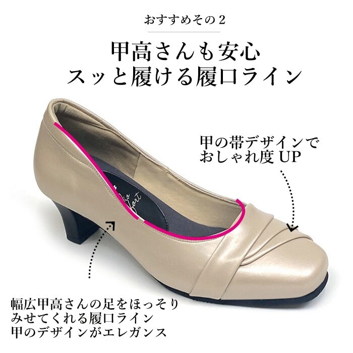 「どのパンプスも足が痛くなる…」と諦めていた方も、ぜひ一度お試しください。おしゃれも快適さも両方叶える、幅広甲高さんのための優秀パンプスです。