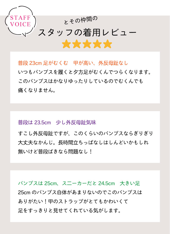 nonさん 30才 靴サイズ:25cm 身長:165cm 足幅:4E~5E 足囲:26cm 幅広甲高・外反母趾は無 |