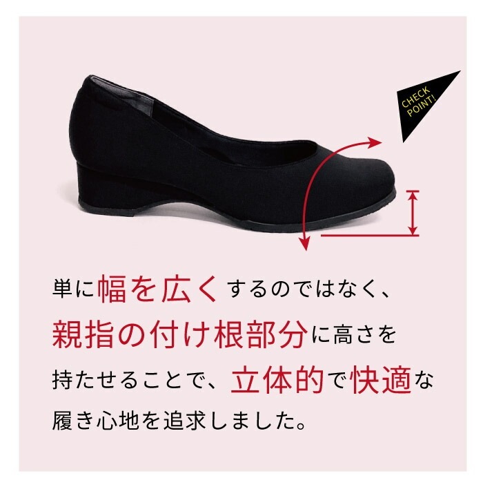 デザイン面でも細部にこだわり、スッキリとスマートなシルエットを実現。単に幅を広くするのではなく、親指の付け根部分に高さを持たせることで、立体的で快適な履き心地を追求しました。当ブランドならではの独自の4E設計が、足を包み込むようなフィット感を提供します。