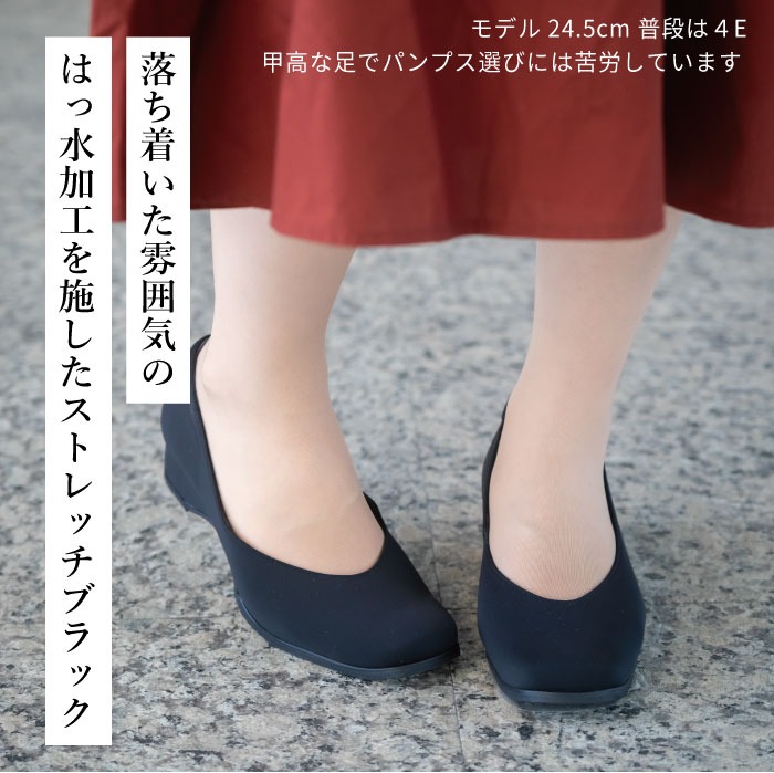 はっ水加工を施した上質な素材をアッパーに採用し、ストレッチ性にも優れた一足。履き口が広めに設計されているため、スムーズに足を入れることができます。